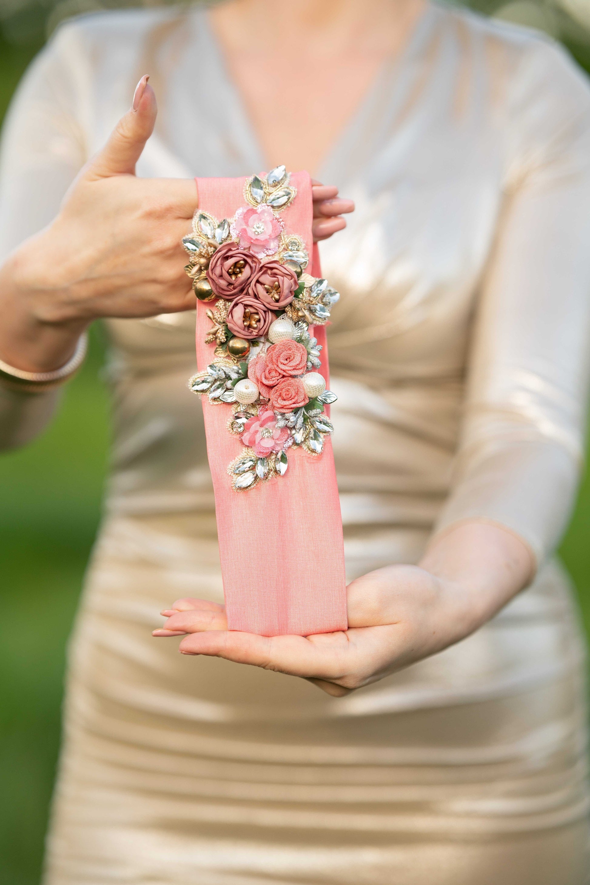 We suggest wearing your hair in soft waves or a sleek ponytail to showcase the headband's elegant design.