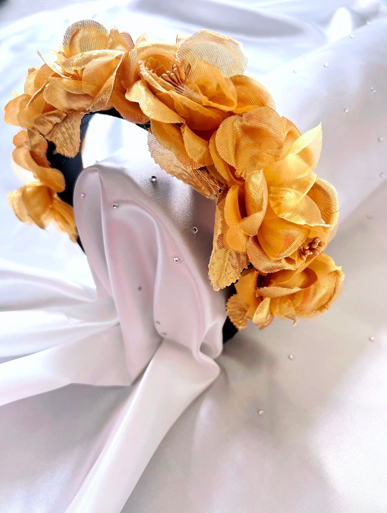The Laurel Headband is a charming floral crown. This piece effortlessly classic and femininity. The vibrant gold colour of the rosettes ensure you command attention, no matter where you go. This stunning headband is designed to complement all hair types, from straight to curly, thick to fine.