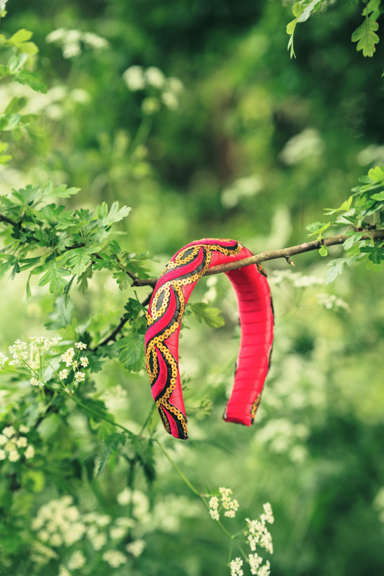 The Noémie headband features a padded structure for comfort and is wrapped in luxurious ribbon fabric. Adorned with shimmering sequins, it offers a bold 5cm width that makes a striking statement. This versatile headband is designed to complement all hair types, from straight to curly, thick to fine.